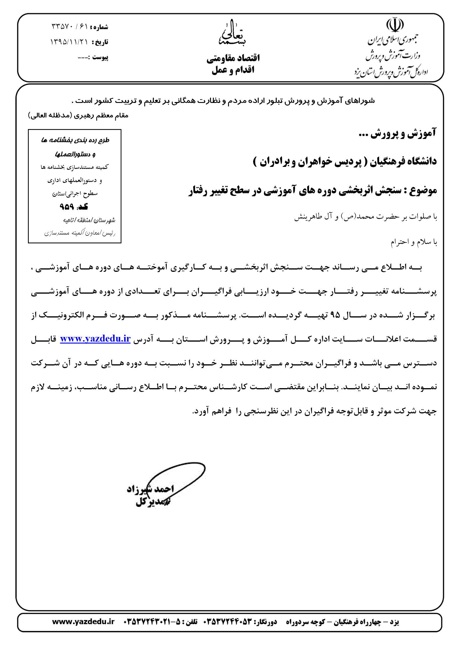 فرم سنجش اثربخشی دوره های آموزشی در سطح تغییر رفتار ( اداره کل آموزش و پرورش استان)