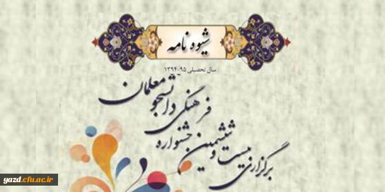 امتیاز دهید : شیوه نامه اجرایی بیست و ششمین جشنواره فرهنگی دانشگاه فرهنگیان 2 سهشنبه 17 آذر 1394 ساعت 8:58