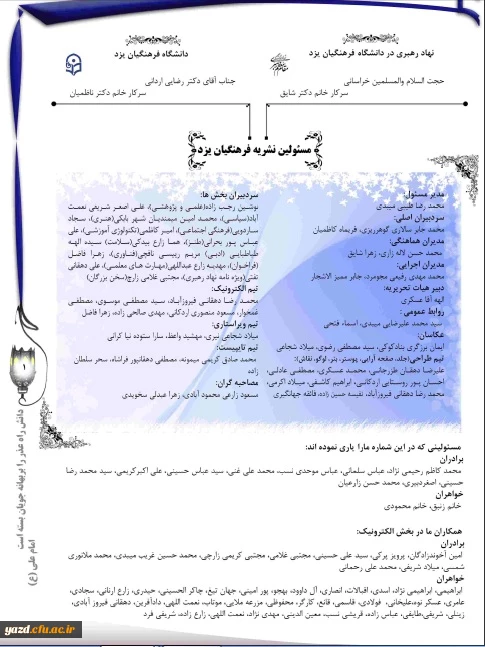با همکاری دفتر نهاد رهبری اولین نشریه مشترک پردیس های استانی یزد منتشر شد : نشریه فرهنگیان یزد 2