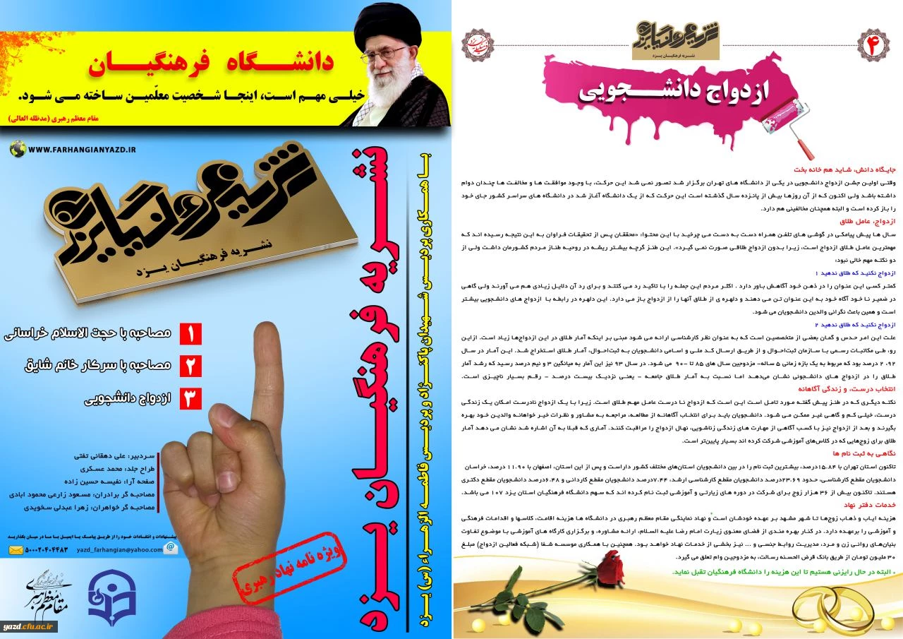با همکاری دفتر نهاد رهبری اولین نشریه مشترک پردیس های استانی یزد منتشر شد : نشریه فرهنگیان یزد 3