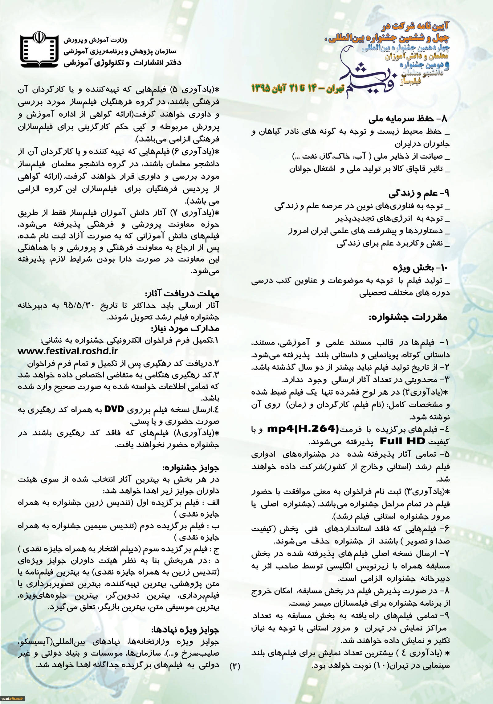 آیین نامه و فرم ثبت نام شرکت در جشنواره ۴۶ فیلم رشد  2