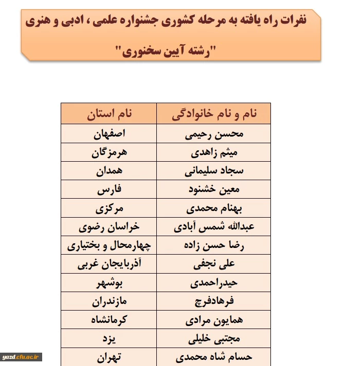 اسامی نفرات راه یافته به مرحله کشوری جشنواره علمی، ادبی وهنری اعلام شد(استان یزد) 3