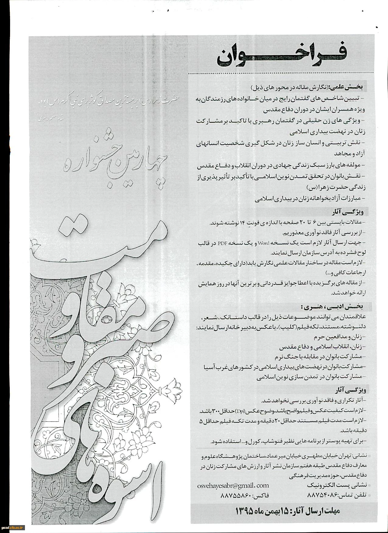 فراخوان چهارمین جشنواره اسوه های صبر و مقاومت و اولین جشنواره ایستادگی و پیام رسانی 3