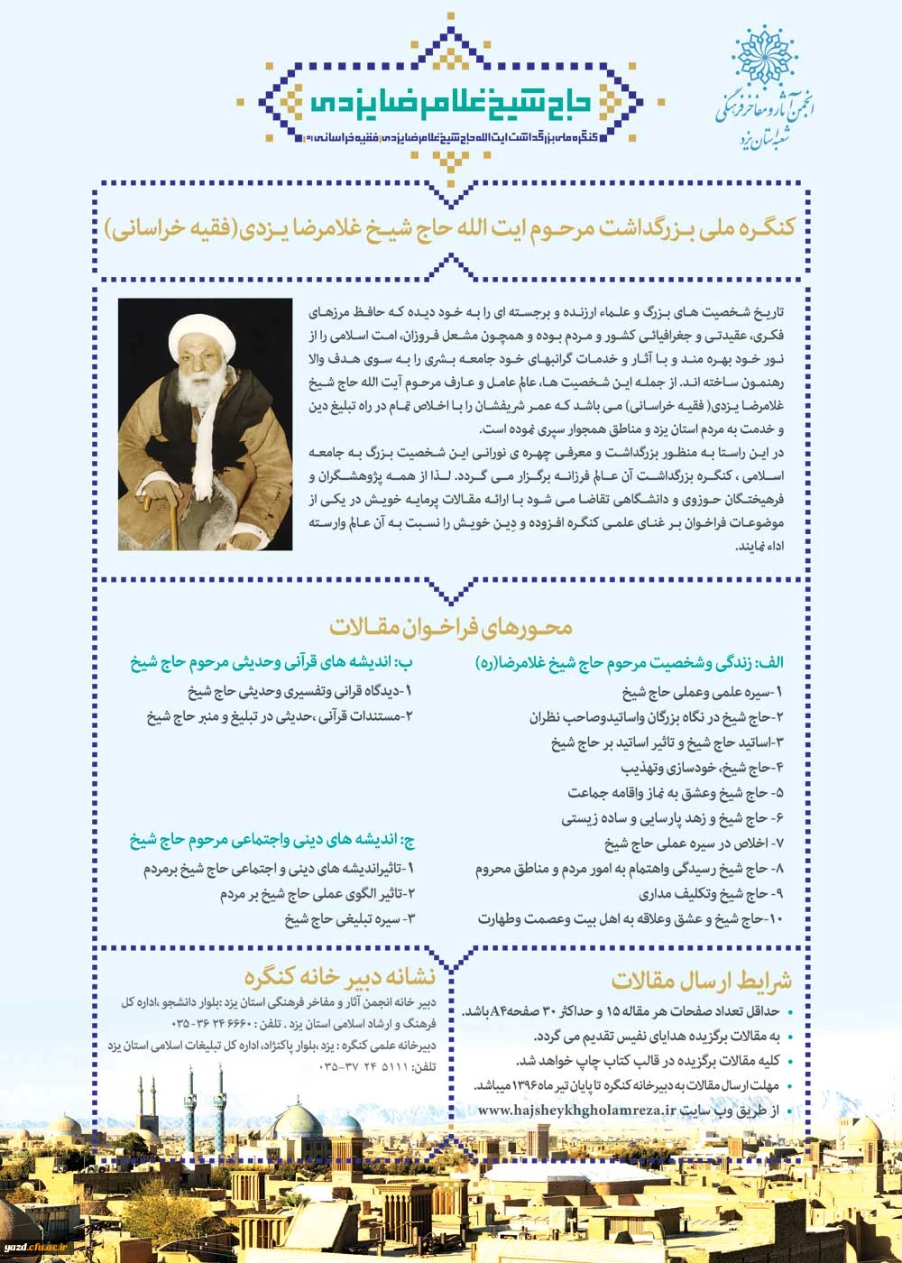 امتیاز دهید : کنگره ملی بزرگداشت آیت الله حاج شیخ غلامرضا یزدی " فقیه خراسانی" 2 شنبه 15 اردیبهشت 1397 ساعت 12:31