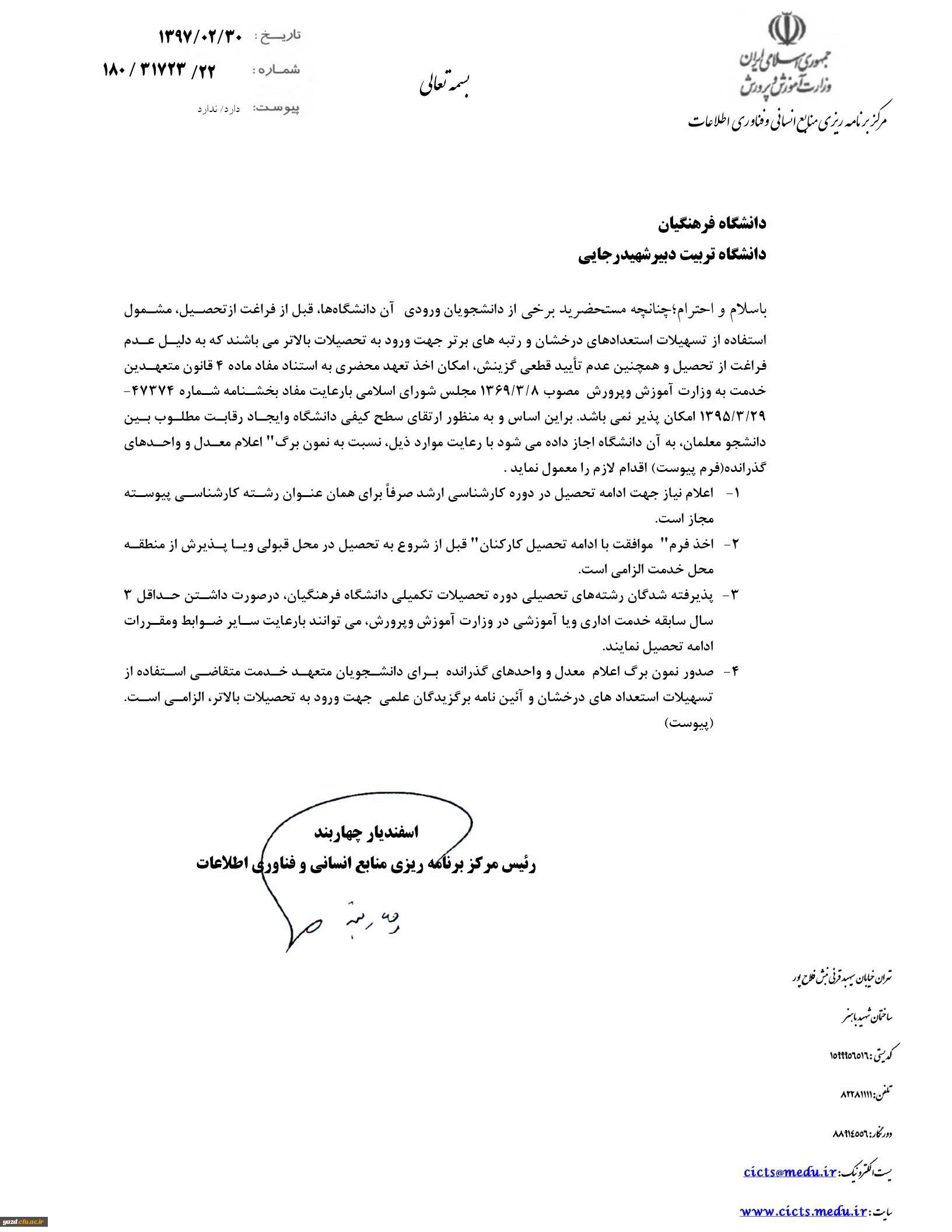 قابل توجه دانشجویان متعهد خدمت متقاضی استفاده از تسهیلات استعداد های درخشان 2