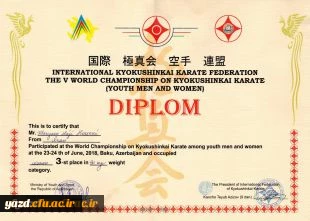 پیام تبریک دکتر رضایی به مناسبت کسب مقام سوم در رقابت های قهرمانی جهانی رشته کاراته سبک کیوکوشین (باکو 2018) 2