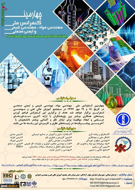امتیاز دهید : فراخوان چهارمین کنفرانس ملی مهندسی مواد، شیمی و ایمنی صنعتی 3 یکشنبه 8 مهر 1397 ساعت 14:55