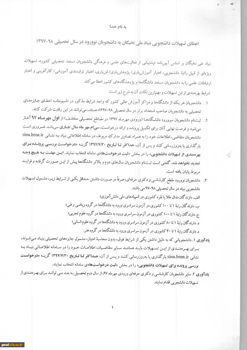 اطلاعیه اختصاص راتبه های تحصیلی بنیاد ملی نخبگان به دانشجویان نو ورود 2