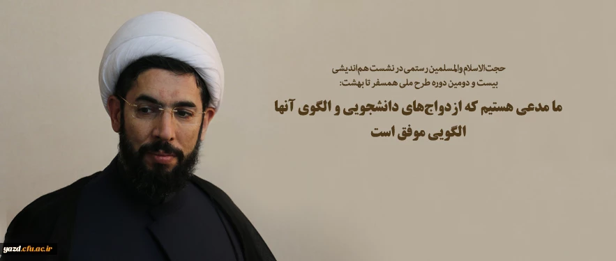 حجت الاسلام والمسلمین رستمی در نشست هم اندیشی بیست و دومین دوره طرح ملی همسفر تا بهشت: ما مدعی هستیم که ازدواج های دانشجویی و الگوی آنها الگویی موفق است