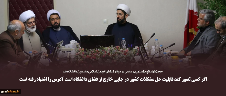 حجت الاسلام والمسلمین رستمی در دیدار اعضای انجمن اسلامی مدرسین دانشگاه ها: اگر کسی تصور کند قابلیت حل مشکلات کشور در جایی خارج از فضای دانشگاه است آدرس را اشتباه رفته است