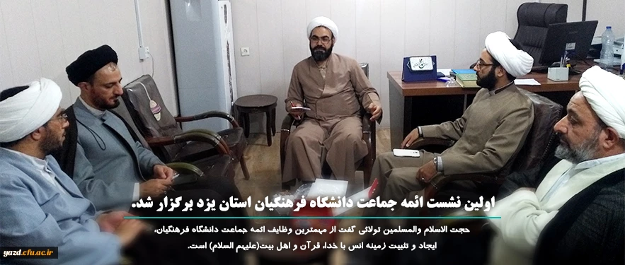 اولین نشست ائمه جماعت دانشگاه فرهنگیان استان یزد برگزار شد. حجت الاسلام والمسلمین تولائی گفت از مهمترین وظایف ائمه جماعت دانشگاه فرهنگیان، ایجاد و تثبیت زمینه انس با خدا، قرآن و اهل بیت(علیهم السلام) است.