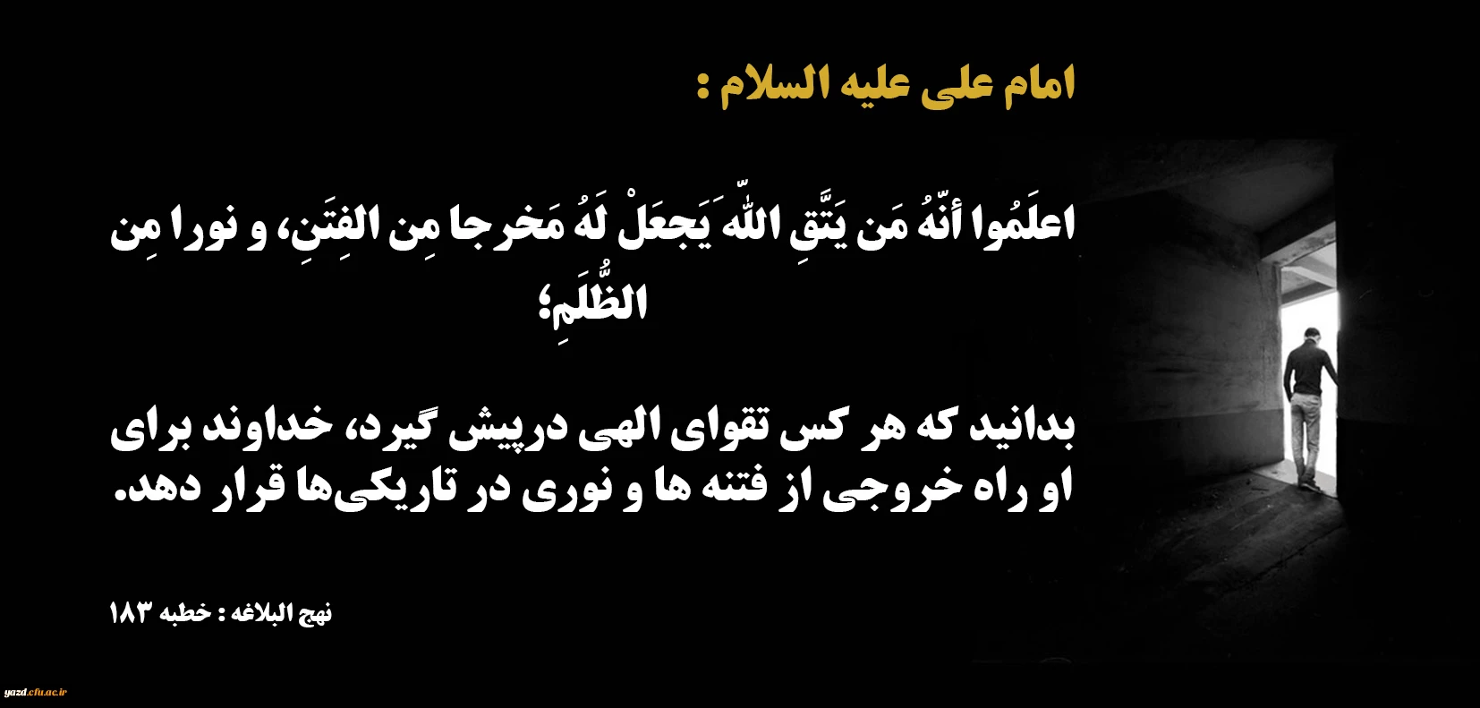 بدانید که هر کس تقواى الهى درپیش گیرد، خداوند براى او راه خروجى از فتنه‏ ها و نورى در تاریکی‏ها قرار دهد.