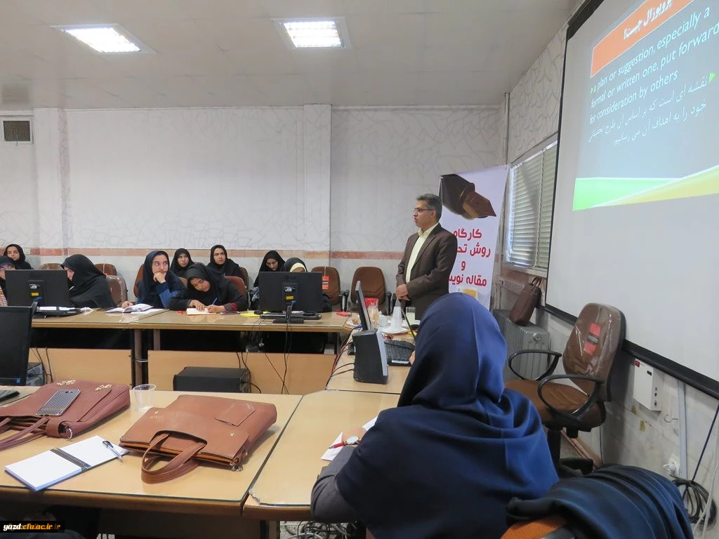 به مناسبت هفته پژوهش و فناوری، با حضور دکتر مسلمان یزدی برگزار شد: کارگاه آموزشی روش تحقیق و مقاله نویسی در پردیس فاطمه الزهرا(س) یزد 3