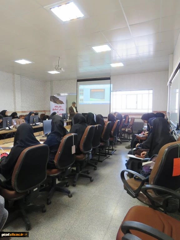 به مناسبت هفته پژوهش و فناوری، با حضور دکتر مسلمان یزدی برگزار شد: کارگاه آموزشی روش تحقیق و مقاله نویسی در پردیس فاطمه الزهرا(س) یزد 4