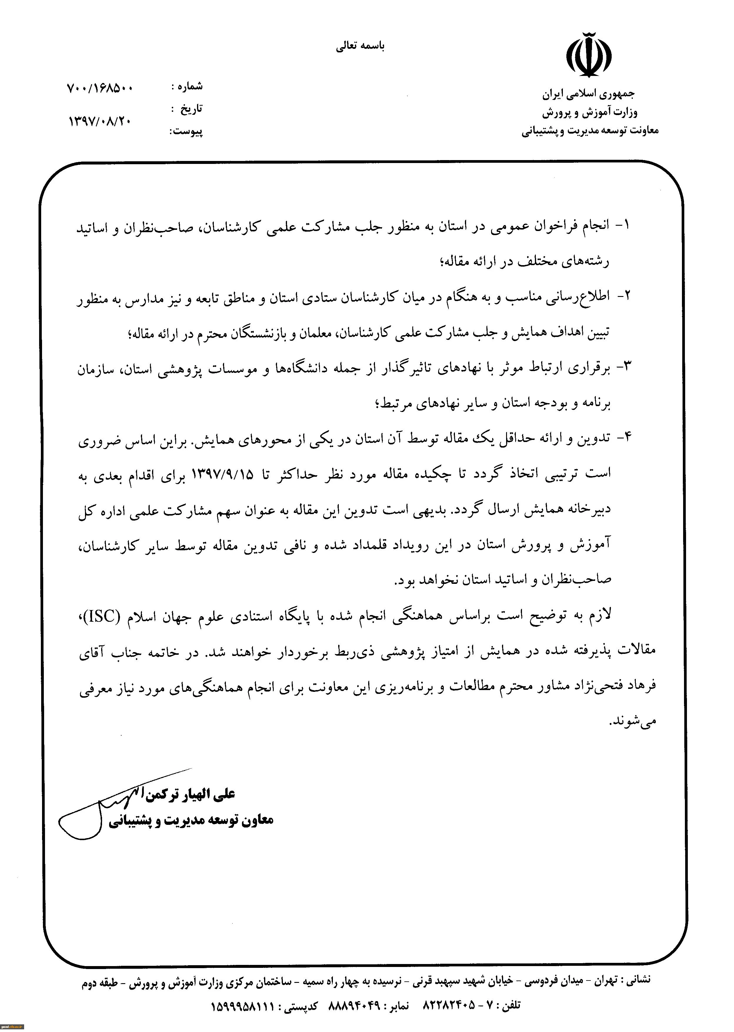 برگزاری اولین همایش ملی اقتصاد آموزش و پرورش با محوریت مدیریت منابع انسانی و مالی 2