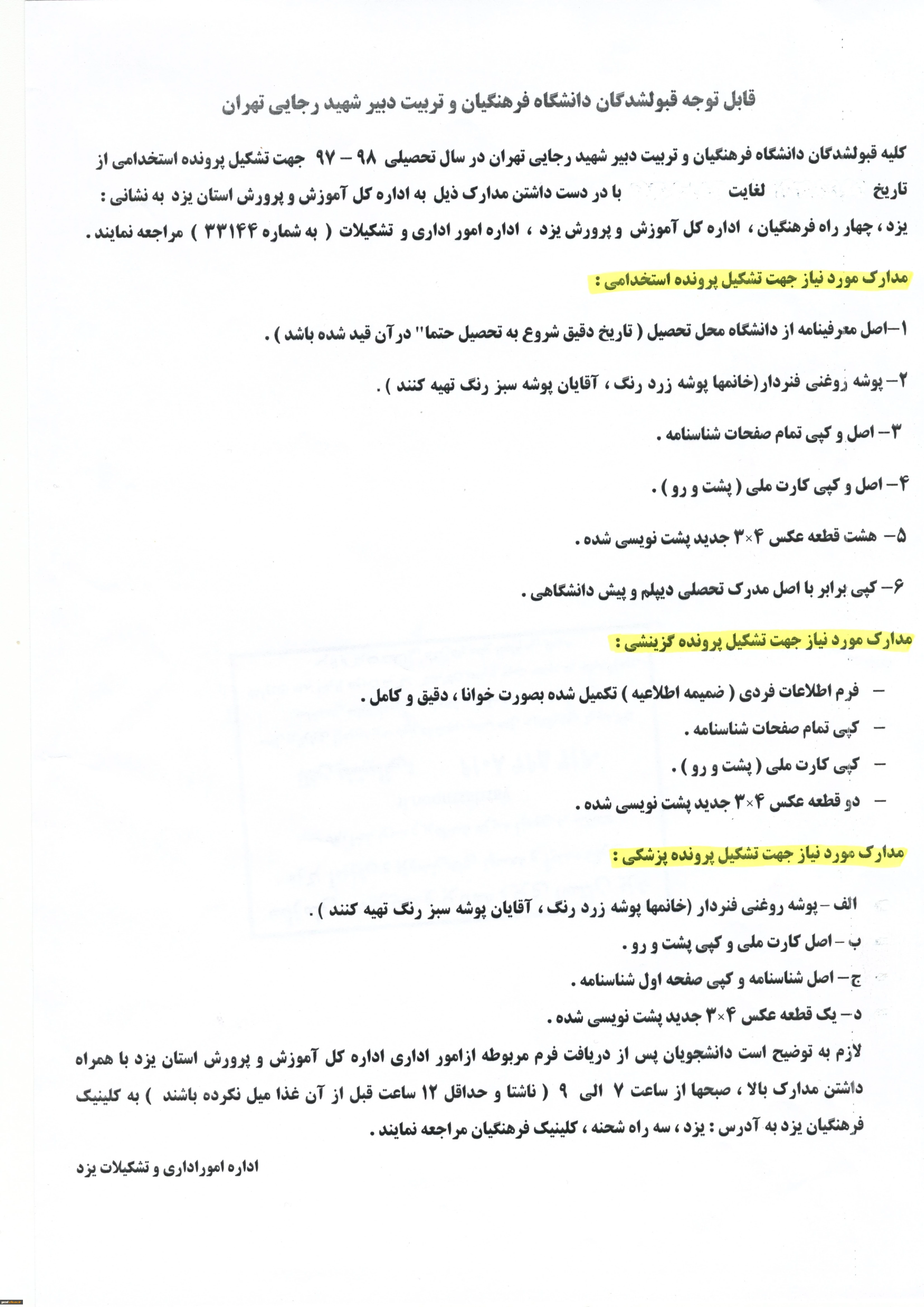قابل توجه دانشجویان ورودی 97 دانشگاه فرهنگیان 2