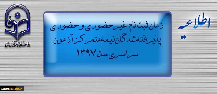 اطلاعیه زمان ثبت نام « غیرحضوری و حضوری» پذیرفته شدگان نیمه متمرکز آزمون سراسری سال 1397 2