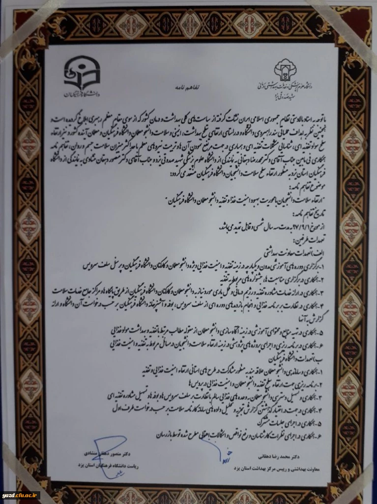 انعقاد تفاهم نامه دانشگاه فرهنگیان با دانشگاه علوم پزشکی یزد در جهت حفظ و ارتقای سلامت 5