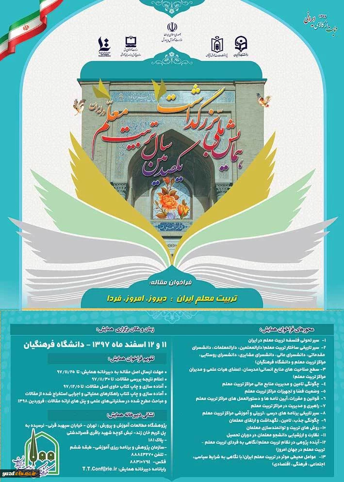 امتیاز دهید : برگزاری همایش ملی با عنوان تربیت معلم ایران: دیروز، امروز 2 چهارشنبه 17 بهمن 1397 ساعت 13:53