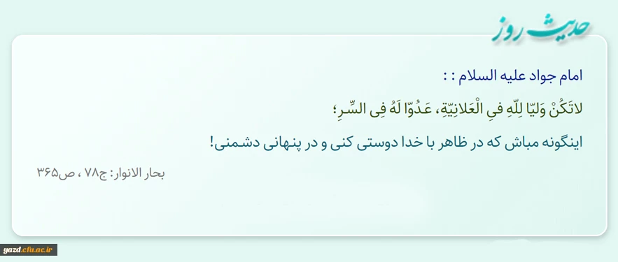 امتیاز دهید : اینگونه مباش که در ظاهر با خدا دوستى کنى و در پنـهانى دشـمنى! دوشنبه 27 اسفند 1397 ساعت 8:41