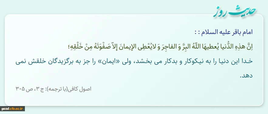 خــدا این دنیـا را به نیـکوکار و بدکار مى بخـشد، ولى «ایمان» را جز به برگزیدگان خلقش نمى دهد.