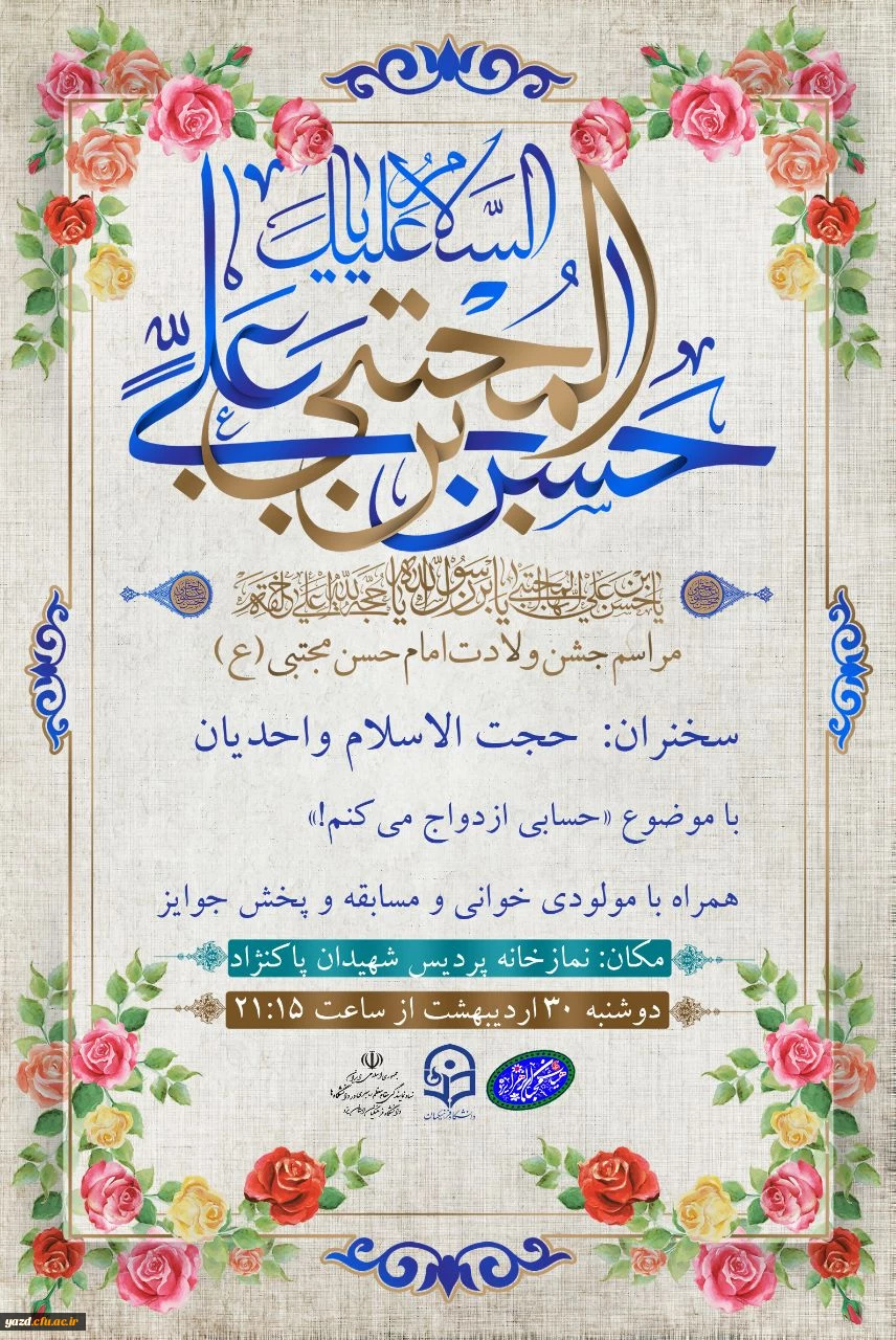 امتیاز دهید : برگزاری مراسم جشن میلاد امام حسن مجتبی (ع) در پردیس شهیدان پاک نژاد یزد 2 چهارشنبه 1 خرداد 1398 ساعت 11:29