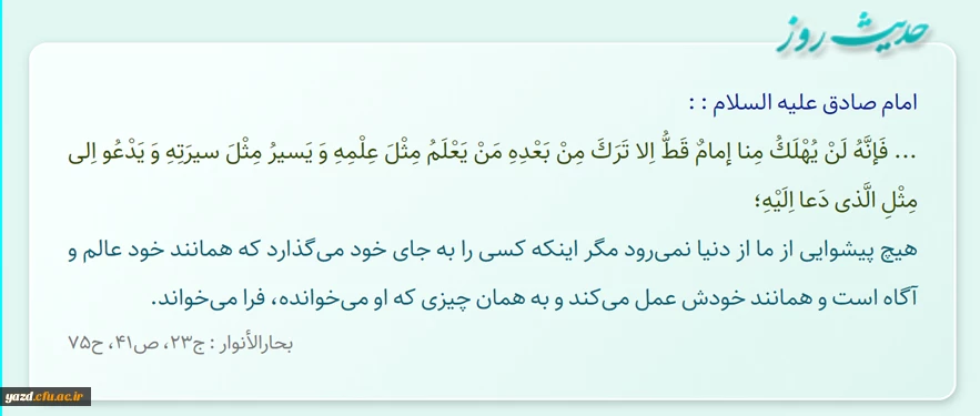 هیچ پیشوایى از ما از دنیا نمى رود مگر اینکه کسى را به جاى خود مى گذارد که همانند خود عالم و آگاه است