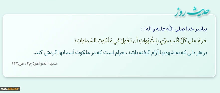 امتیاز دهید : بر هر دلى که به شهوتها آرام گرفته باشد، حرام است که در ملکوت آسمانها گردش کند. 2 سهشنبه 23 مهر 1398 ساعت 10:53