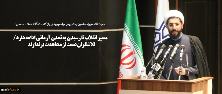 حجت الاسلام والمسلمین رستمی در مراسم رونمایی از کتب دهگانه انقلاب اسلامی: مسیر انقلاب تا رسیدن به تمدن آرمانی ادامه دارد/ تلاشگران دست از مجاهدت برندارند 2
