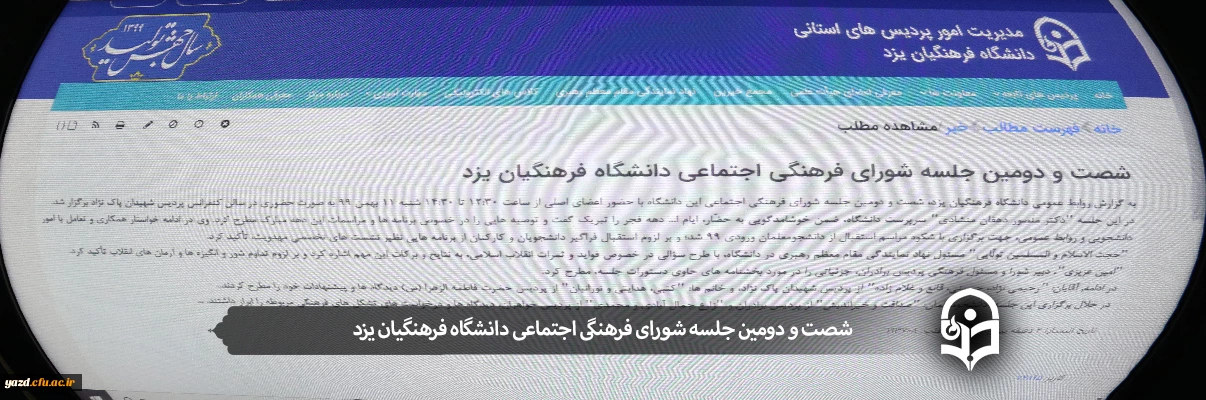امتیاز دهید : شصت و دومین جلسه شورای فرهنگی اجتماعی دانشگاه فرهنگیان یزد 2 دوشنبه 13 بهمن 1399 ساعت 18:29
