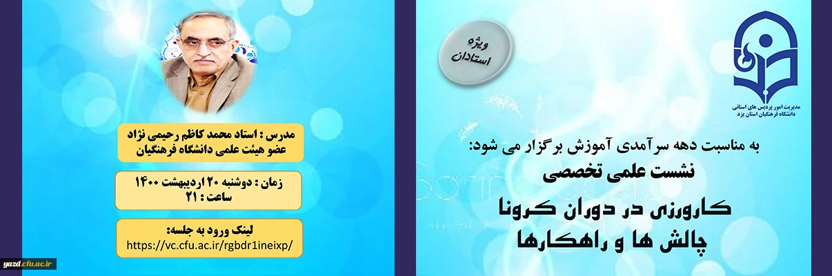 امتیاز دهید : نشست علمی تخصصی کارورزی در دوران کرونا چالش ها و راهکارها "ویژه اساتید" 2 دوشنبه 20 اردیبهشت 1400 ساعت 10:00