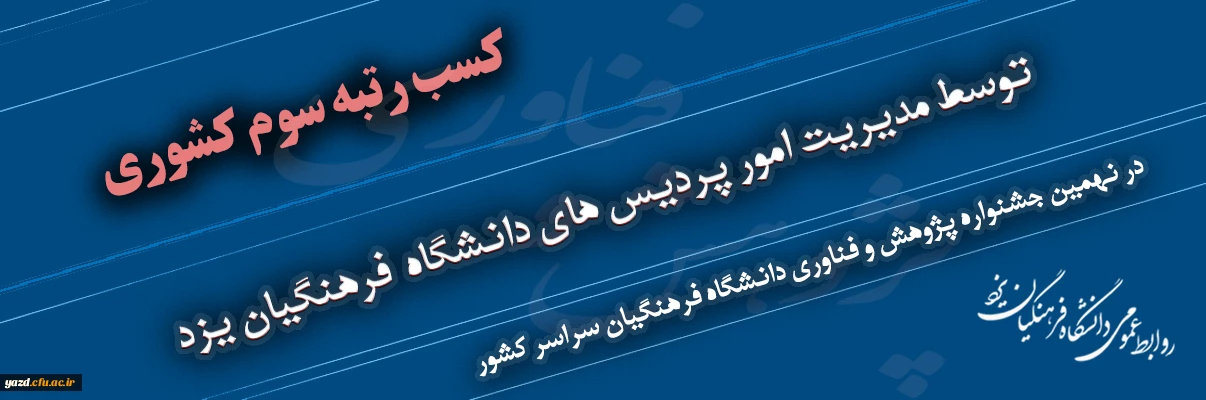کسب رتبه سوم مدیریت امور پردیس های دانشگاه فرهنگیان یزد در نهمین جشنواره پژوهش و فناوری دانشگاه فرهنگیان سراسر کشور 2