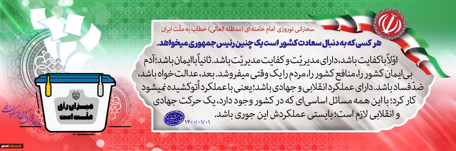 امتیاز دهید : هر کسی که به دنبال سعادت کشور است یک چنین رئیس جمهوری می خواهد ... 2 یکشنبه 9 خرداد 1400 ساعت 16:29