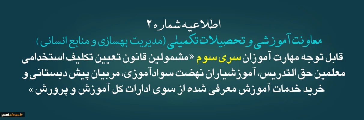 اطلاعیه شماره2 معاونت آموزشی و تحصیلات تکمیلی ( مدیریت بهسازی ) 2