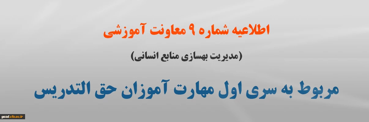 اطلاعیه شماره 9 معاونت آموزشی (مدیریت بهسازی منابع انسانی) مربوط به سری اول مهارت آموزان حق التدریس 2