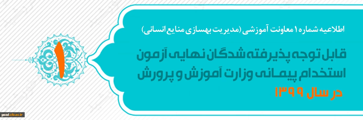 اطلاعیه شماره 1 معاونت آموزشی (مدیریت بهسازی منایع انسانی) قابل توجه پذیرفته شدگان نهایی آزمون استخدام پیمانی وزارت آموزش و پرورش در سال 1399 2