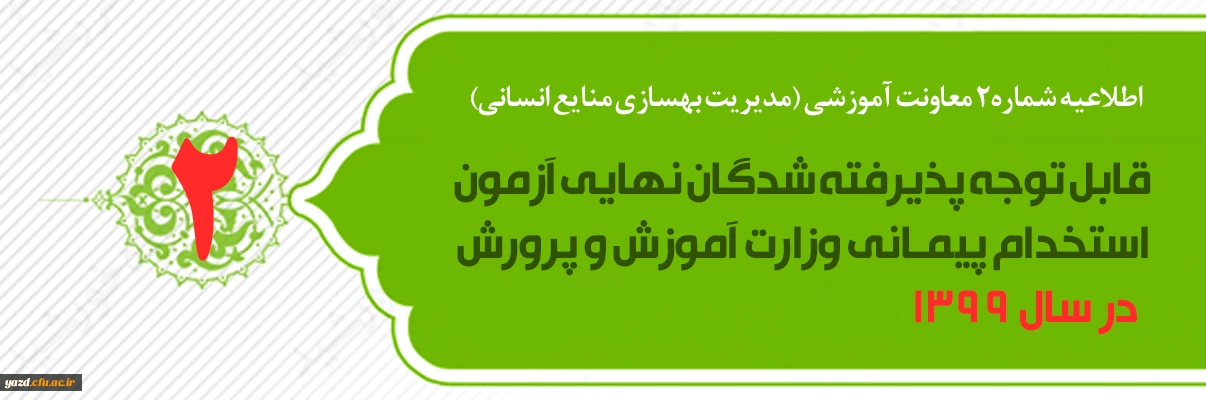 اطلاعیه شماره2 معاونت آموزشی و تحصیلات تکمیلی ( مدیریت بهسازی ) قابل توجه پذیرفته شدگان نهایی آزمون استخدام پیمانی وزارت آموزش و پرورش در سال 1399 2
