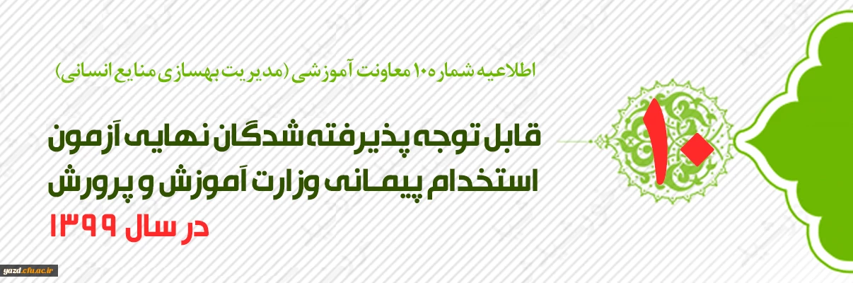 اطلاعیه شماره 10 معاونت آموزشی (مدیریت بهسازی منابع انسانی) آزمون پایان پودمان اول سری دوم مهارت آموزان حق التدریس 2