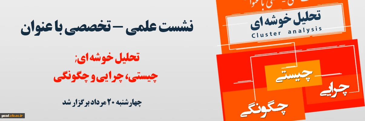 امتیاز دهید : گزارش برگزاری نشست علمی - تخصصی با عنوان تحلیل خوش های; چیستی، چرایی و چگونگی 2 شنبه 23 مرداد 1400 ساعت 12:15