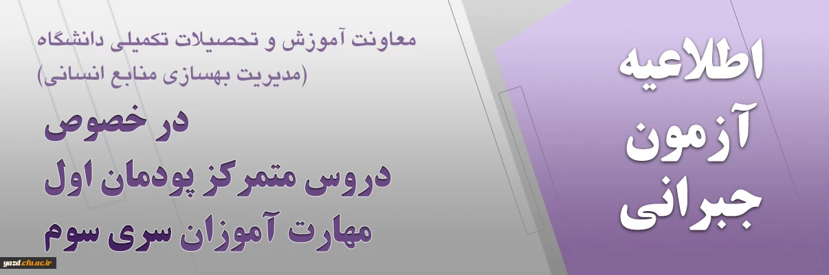 اطلاعیه آزمون جبرانی معاونت آموزش و تحصیلات تکمیلی دانشگاه (مدیریت بهسازی منابع انسانی) در خصوص دروس متمرکز پودمان اول مهارت آموزان سری سوم 2