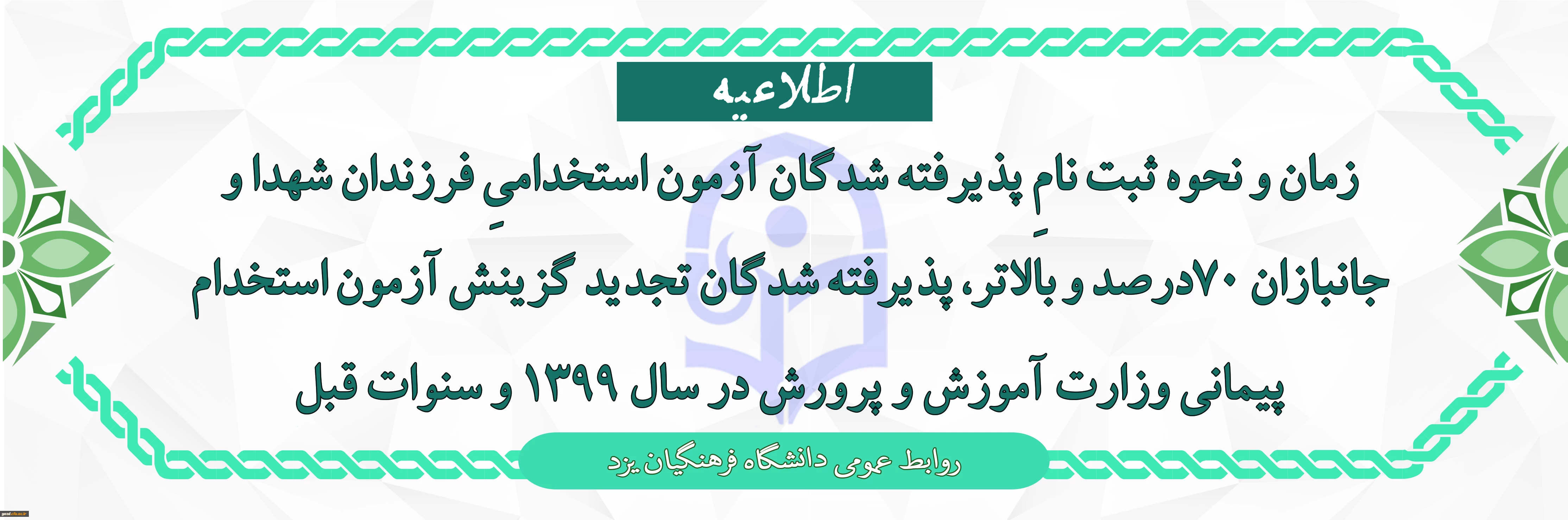 زمان و نحوه ثبت نامِ پذیرفته شدگان آزمون استخدامیِ فرزندان شهدا و جانبازان 70درصد و بالاتر، پذیرفته شدگان تجدید گزینش آزمون استخدام پیمانی وزارت آموزش و پرورش در سال 1399 و سنوات قبل 2