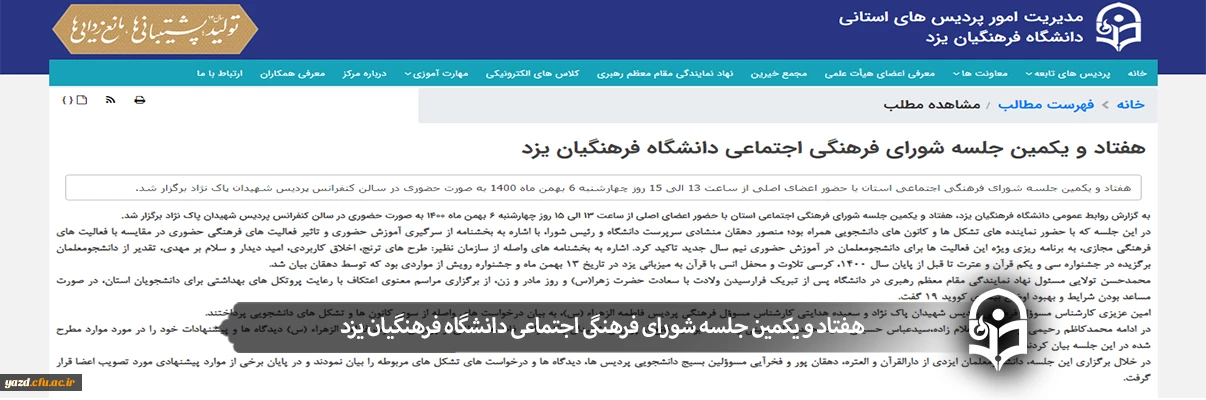 امتیاز دهید : هفتاد و یکمین جلسه شورای فرهنگی اجتماعی دانشگاه فرهنگیان یزد 2 شنبه 9 بهمن 1400 ساعت 10:41