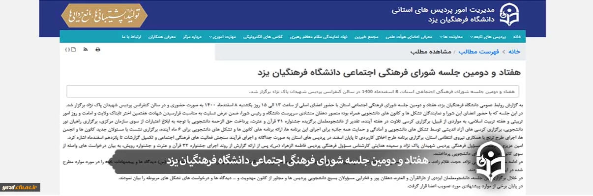 امتیاز دهید : هفتاد و دومین جلسه شورای فرهنگی اجتماعی دانشگاه فرهنگیان یزد 2 دوشنبه 9 اسفند 1400 ساعت 15:04