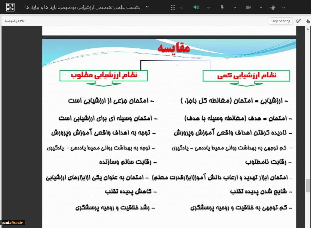 امتیاز دهید : نشست علمی - تخصصی ارزشیابی توصیفی: بایدها و نبایدها 6 چهارشنبه 18 اسفند 1400 ساعت 14:36