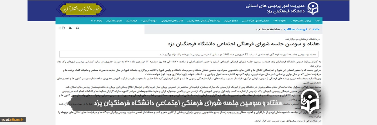 امتیاز دهید : هفتاد و سومین جلسه شورای فرهنگی اجتماعی دانشگاه فرهنگیان یزد 2 سهشنبه 23 فروردین 1401 ساعت 9:26
