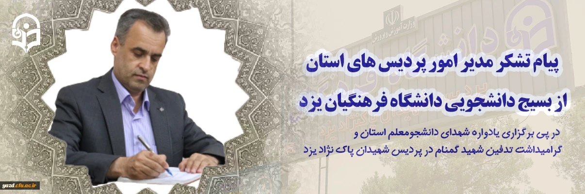 امتیاز دهید : پیام تشکر مدیر امور پردیس های استان از بسیج دانشجویی دانشگاه فرهنگیان یزد 2 شنبه 7 خرداد 1401 ساعت 16:02