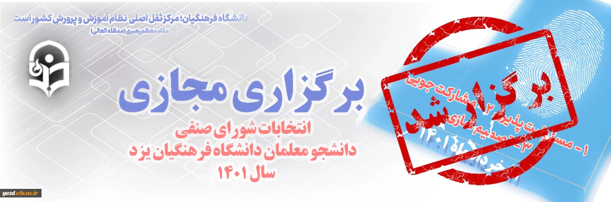 امتیاز دهید : انتخابات شورای صنفی رفاهی دانشجومعلمان دانشگاه فرهنگیان یزد 2 دوشنبه 30 خرداد 1401 ساعت 11:23