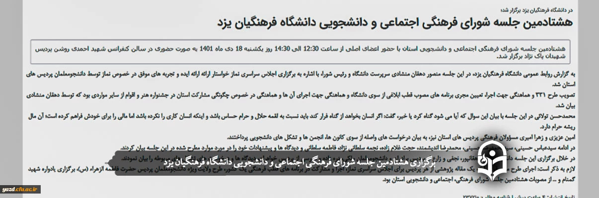 امتیاز دهید : هشتادمین جلسه شورای فرهنگی اجتماعی و دانشجویی دانشگاه فرهنگیان یزد 2 شنبه 24 دی 1401 ساعت 9:47