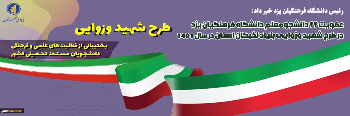 امتیاز دهید : عضویت ۴۴ دانشجومعلم دانشگاه فرهنگیان یزد در بنیاد نخبگان استان 2 شنبه 27 اسفند 1401 ساعت 12:24
