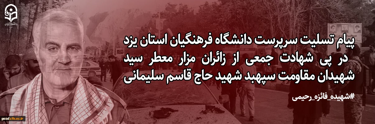 پیام تسلیت سرپرست دانشگاه فرهنگیان استان یزد در پی شهادت جمعی از زائران مزار معطر سید شهیدان مقاومت سپهبد شهید حاج قاسم سلیمانی 2